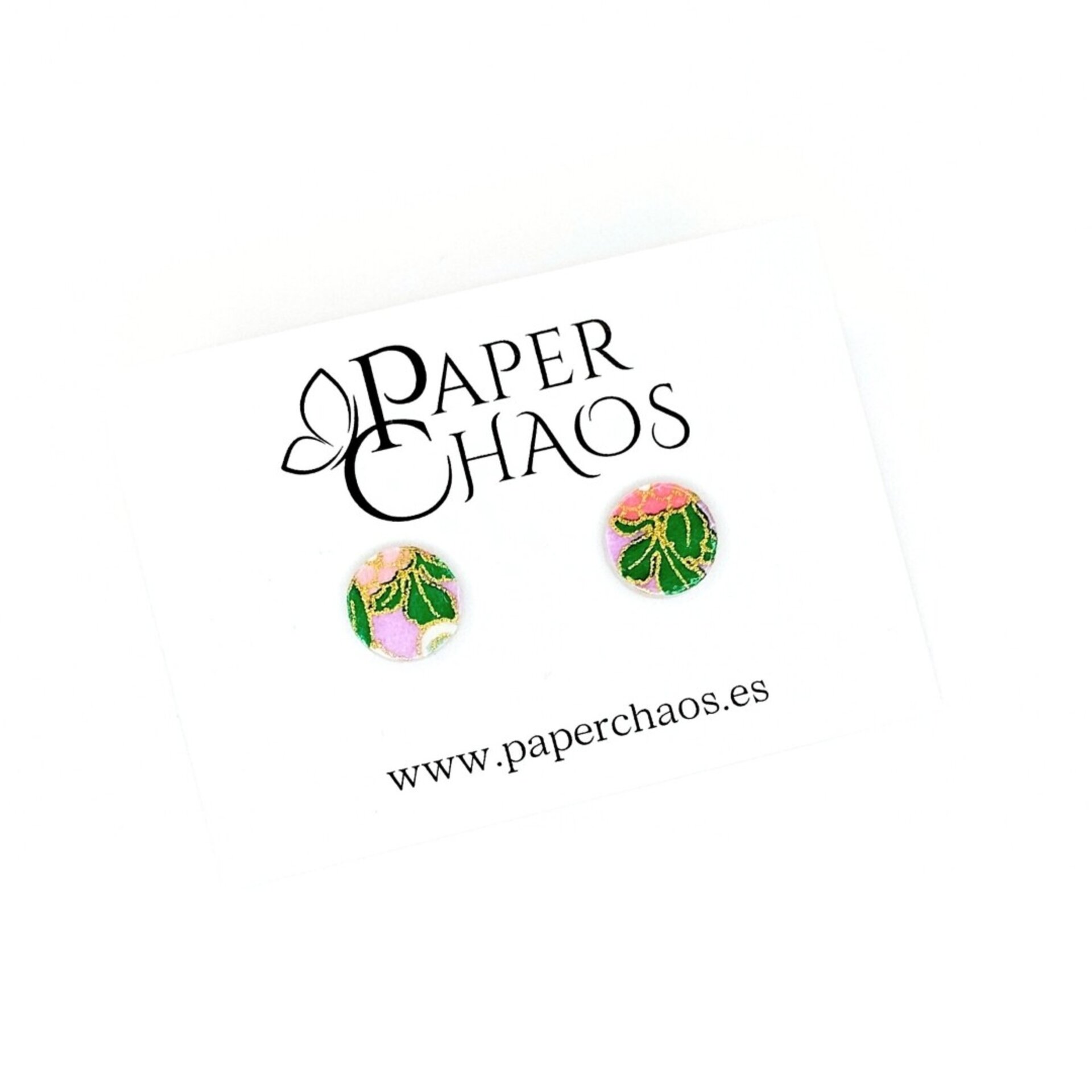ERIS | Pendientes de botón redondos rosas de papel reciclado