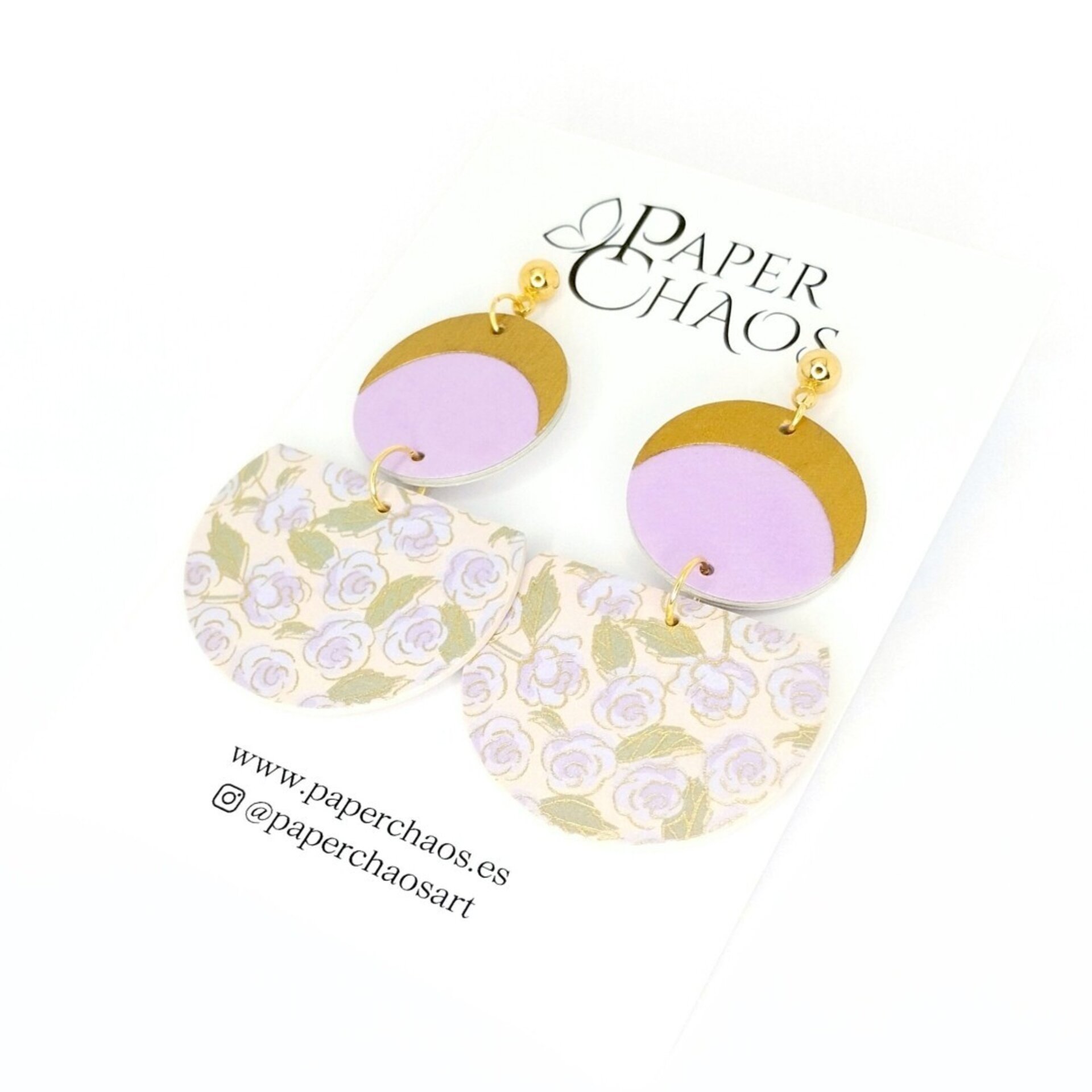 Elegantes, alegres y coloridos, estos pendientes son perfectos si estás buscando un complemento único y diferente para combinar con tus looks más especiales. Cada pieza ha sido cuidadosamente elaborada con cartulinas y cartones reciclados, y decorada con hermoso papel Chiyogami japonés de gran calidad. A pesar de su tamaño, estos